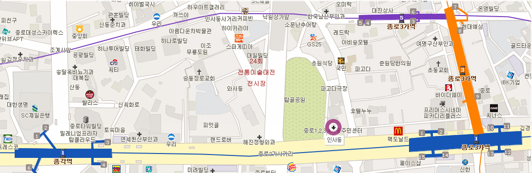 Á¾·Î3°¡¿ª : 1¹øÃⱸ ³ª¿Í ž°ñ°ø¿øÁö³ª ½ÅÈ£µî°Ç³ÊÀÚ ¸¶ÀÚ ¿ìÃøÀ¸·Î µ¹¾Æ Àλ絿±æ·Î µé¾î¼¸é Àλ絿 ÀÔ±¸ ¸¸³²ÀÇ ±¤ÀåµÚ ´ëÀϺôµù ÁöÇÏ1Ãþ